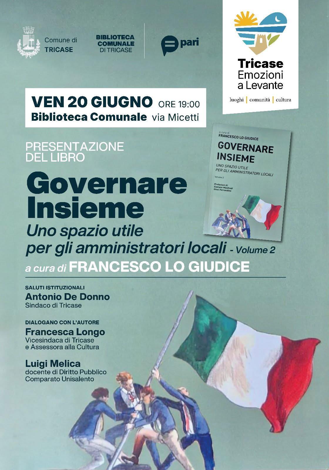 Dopo la prestigiosa presentazione alla Camera dei Deputati lo scorso 24 gennaio, il libro “Governare Insieme – Uno spazio utile per gli amministratori locali – Volume 2”, a cura di Francesco Lo Giudice e pubblicato da Apollo Edizioni, prosegue il suo percorso fuori regione con un nuovo appuntamento in Puglia. L’incontro si terrà oggi alle ore 19:00 presso la Biblioteca Comunale di Tricase, in provincia di Lecce.